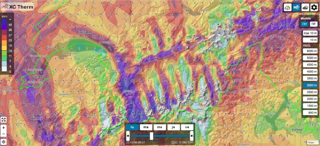 - Animations de vent en altitude : MétéoSuisse ou XCTherm (gratuits)